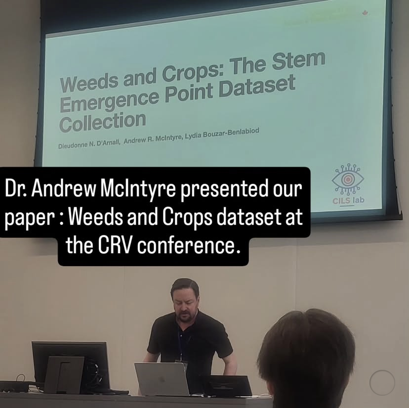 CRV conferenceDr. Andrew Mclntyre presenting papers on Weeds and Crops dataset.      |